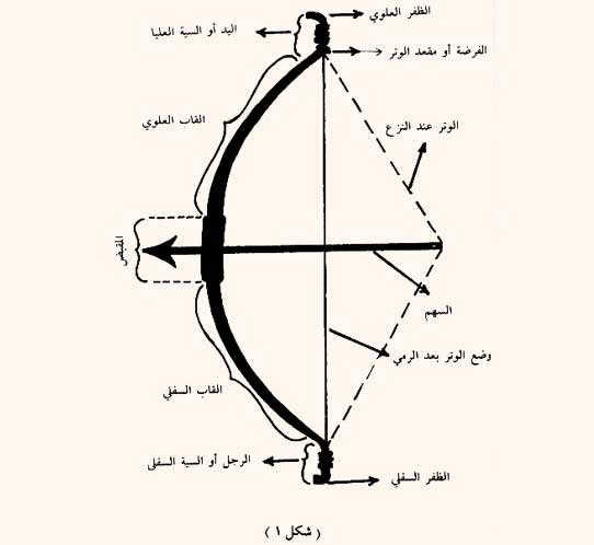 وللقوس أجزاء، تجد أسماءها في الشكل المرفق (الشكل رقم 1) و (الشكل رقم 2) . [ ص: 150 ]