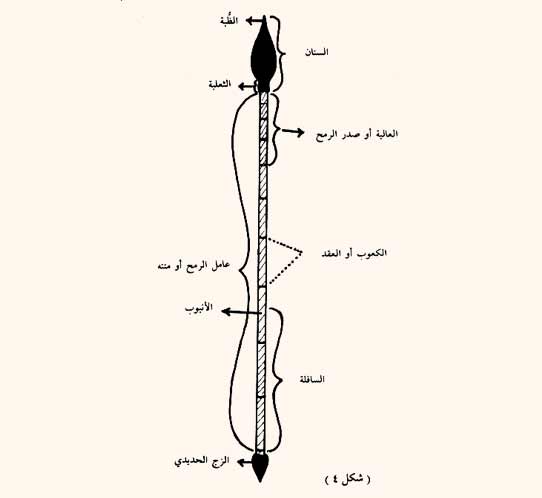 ومجمل أسماء أجزاء الرمح تجدها في (الشكل رقم4) .