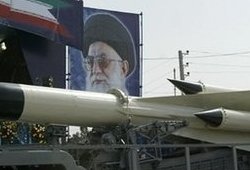 An Iranian navy missile is displayed during the army day military parade in Tehran in 2007.